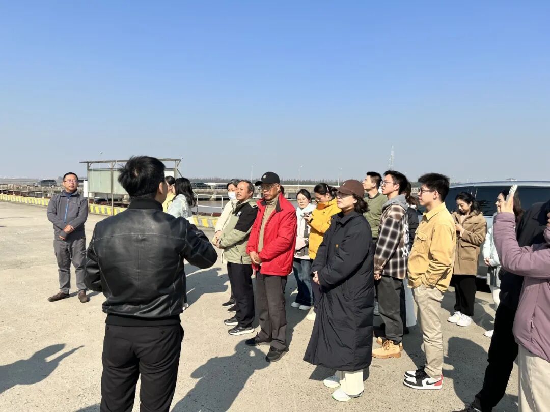 随后,师生一行前往交通运输部长江口航道管理局横沙基地参观。首先来到基地码头,近距离观摩大国重器“长江口02号”耙吸式挖泥船,船长详细讲解了疏浚工程在航道维护与生态保护中的核心价值。紧接着,走进基地指挥中心,实地观摩实时作业监控系统与智能调度平台。从“疏浚利器”到“智慧中枢”,师生们见证了大型工程项目中的数字治理突破,感受到“中国制造”向“中国智造”的跨越。