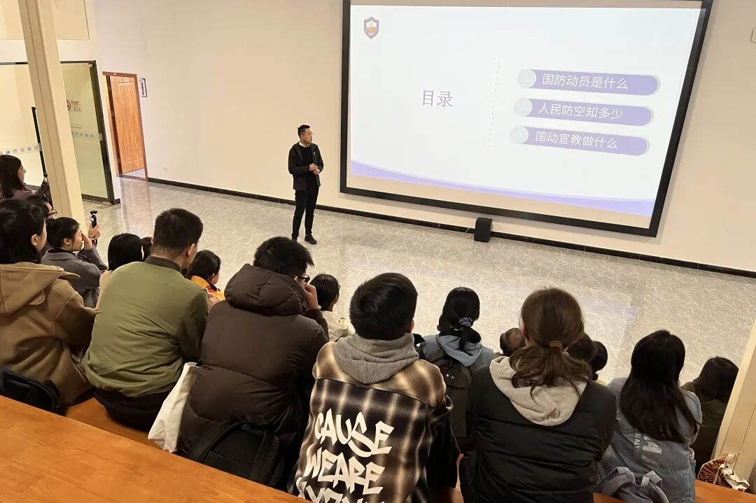 在TT乡村公益图书馆阶梯教室,上海市崇明区横沙乡党委副书记陶政江致欢迎辞。上海市国防动员办公室民防宣传教育中心邵雯俊作人民防空专题讲座,帮助大家掌握人防防护技能、强化安全防范意识;汤哲辉则结合二十届四中全会精神,为师生带来“‘十五五’战略布局与经济展望”讲座,帮助师生拓宽宏观视野、深化使命认知、提升战略思维。