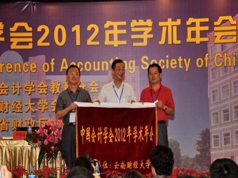 7月7日至8日,中国会计学会2012年学术年会在昆明召开。本次会议由中国会计学会教育分会主办,云南财经大学承办,云南省财政厅、云南省会计学会协办。中国会计学会会长金莲淑,中国会计学会副会长孙铮、戴德明、刘永泽,云南省财政厅厅长陈秋生,云南财经大学党委书记汪戎,云南省会计学会会长唐新民等领导出席开幕式。开幕式由中国会计学会教育分会现任会长彭韶兵主持。