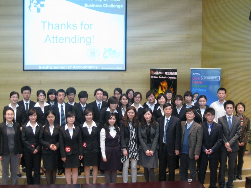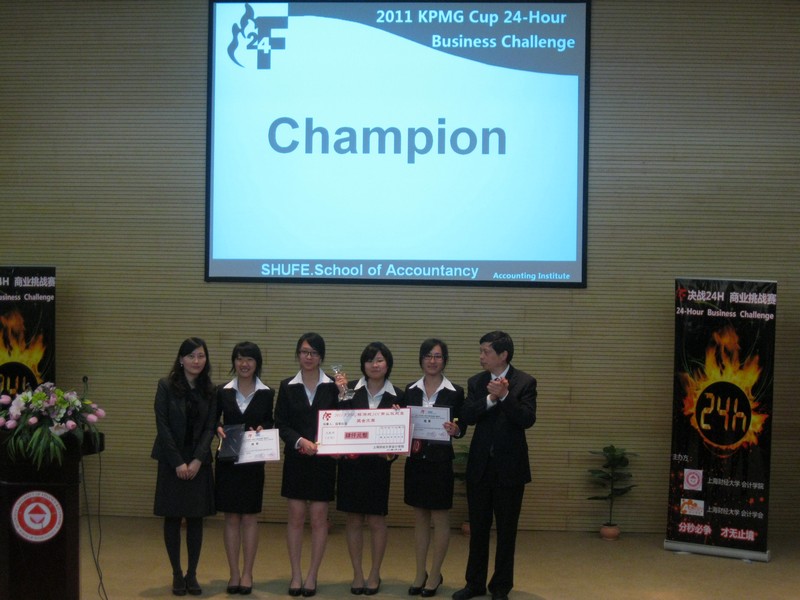 历时一个多月的赛程,2011年4月24日下午,2011 KPMG杯决战24小时商业挑战赛全国总决赛在上海财经大学会计学院学术报告厅顺利落下了帷幕。本赛事源于上海地区的“五校财务案例分析大赛”,2010年,由上海财经大学会计学院会计学会革新并发起主办。今年的比赛邀请了包括复旦大学、华中科技大学、南京大学、山东大学、上海交通大学、上海外国语大学、同济大学、浙江大学、中国人民大学在内的九所高校参加,并吸引了暨南大学和宁波诺丁汉大学等二十余所合作外高校的五百余名同学的积极报名参与。作为一场备受学生关注,同时又别开生面的商业案例分析大赛,赛事也获得了社会各界的鼎力支持。本次赛事由毕马威会计师事务所赞助并冠名,得到了CIMA特许管理会计师公会、汇丰银行、Mackay管理咨询公司、澳大利亚注册会计师公会(CPA Australia)、民生银行、普华永道会计师事务所、安永会计师事务所、CGA上海代表处的合作与协助,以及新浪微博、新民晚报(大学生版)、中国青年报等媒体的支持。与以往类似的商业挑战赛直接4人报名组队不同,本届赛事的赛制设计新颖,采取随机组队的形式来确定最后进入决赛的队伍:先由同校的2位同学组成初赛队伍,在5日内完成15页以内的案例分析;初赛阶段晋级12组后,由来自两所不同高校的队伍随机组成6组4人决赛队伍;经过决赛前的五日磨合期,最后汇聚上海财经大学,进行总决赛。总决赛阶段沿用初赛案例,但新增其他角度的公司信息,并确定新的案例分析方向。比赛还通过安排毕马威企业参观等活动,促进不同高校选手之间的互动交流和沟通合作,让选手在整个比赛过程中收获更多、成长更多。此外,总决赛阶段,4位新组队的选手需要在24小时内,分秒必争,利用有限的资源针对新的案例分析方向提出优化方案,比赛设置充分考验各团队成员的知识储备,考察其自主思考、时间管理、工作分配、团队协作等方面的能力,有助于赛出选手的真实水平,激发选手潜能。参赛队伍在presentation展示后,需要分别回答评委的提问和台下其他参赛队的提问,以决出胜负。本次决赛评委由来自毕马威会计师事务所和汇丰银行的实务界代表,和来自复旦大学、上海财经大学、上海外国语大学和同济大学的高校教师组成,评委高质量的提问,使整场比赛更具挑战,选手们也从评委们的点评过获益良多。选手们的精彩表现,包括严谨的财务分析、全面的战略评价和流利的英语口语等,也获得了现场观众的热烈掌声。经过24小时的奋战和现场的激烈角逐,由同济大学和华中科技大学组成的I Fancy团队夺得冠军,上海外国语大学和浙江大学组队的F.A.M.E团队获得亚军,季军则由复旦大学和中国人民大学组成的E&G团队摘得;浙江大学的胡暇迩和同济大学的杨瑾获得最具风采个人奖,I Fancy团队同时还获得了由新浪微波网络投票评选出的最具人气团队奖。获奖的选手将获得奖金,合作企业也将为部分进入决赛的选手提供宝贵的实习机会。此项比赛为各高校搭建了互动沟通和学术交流的平台,为高校学子提供了一个展示风采的舞台,也为高校之间相互学习借鉴与共同进步提供了机会。不同高校的选手通过合作参赛,建立深厚长久的友谊,收获了宝贵经历。比赛中涌现出许多具有才华和商业潜质的选手,为企业界所欣赏和关注,比赛也成为了校企合作的一座桥梁。