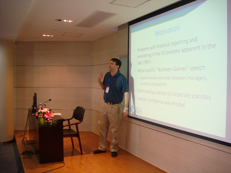 与会期间,上海财经大学会计学院院长陈信元教授为论坛致开幕辞,台湾大学会计系主任Lin Suming教授和香港城市大学会计学系主任KIM Jeong Bon教授均参加了研讨会。随后,三校共计六名青年学者分别宣讲了其研究论文,我院助理教授侯青川博士和周静博士分别报告了“中国股权分置改革中大股东业绩承诺与盈余管理”和“美国产品市场竞争和公司财务报告质量”的论文,体现了本次论坛“论题横贯中西,研究方法汲取海内外之长,论文发表目标为国际顶尖会计学术期刊”的特点。论坛全程语言为英文,论文评论人为来自美国普渡大学、美国哥伦比亚大学和美国德克萨斯大学奥斯丁分校的知名青年会计学者。评论人以丰富的研究经验为基础,对论文提出了诸多建设性的意见,并引起了与会者的热烈讨论,彰显了论坛的学术水准。最后,在台湾大学会计学系系主任Lin Suming教授的总结发言下,论坛圆满结束。下届论坛将在台湾大学举行。
