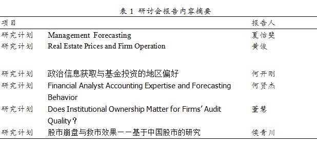 研讨会共报告6篇研究计划,其中2篇研究计划以中国问题为主,其余关注国外问题,分别由作者进行了报告和讨论。具体报告内容见下表: