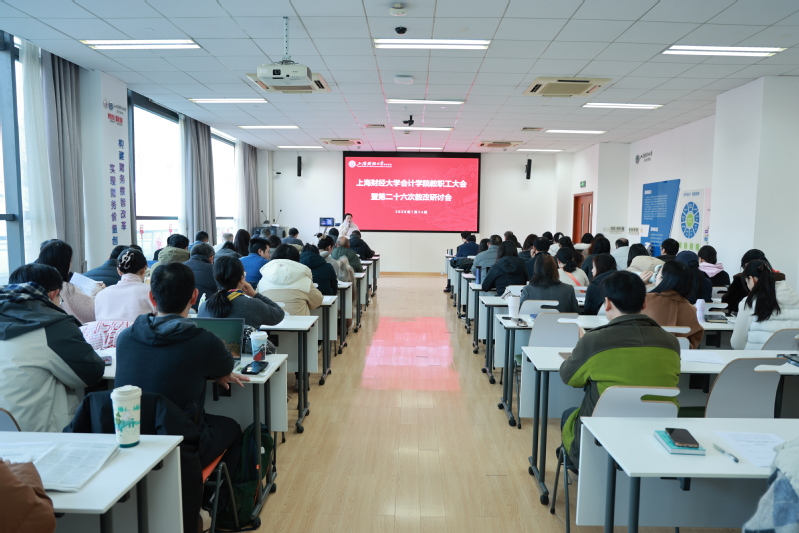 2026年1月14日,上海财经大学会计学院教职工大会暨第二十六次教改研讨会在学院108室顺利召开。上海财经大学副校长李增泉出席会议并作指导讲话,会计学院党政领导班子、全体教职员工90余人参加了会议。