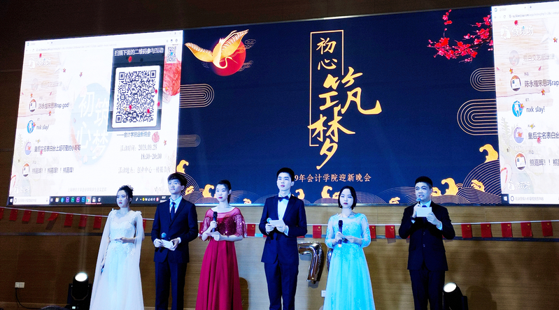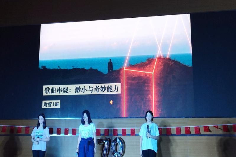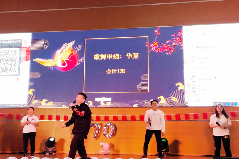 抽奖环节后,进入晚会的第三篇章——“初心不变”,旨在希望同学们要“不忘初心,牢记使命”,为自身、为学校、为祖国的建设添砖加瓦。同学们在节目中充分表达了自己对祖国的热爱之情!财管2班的歌舞《夜空中最亮的星》,诉说那不变的初心如夜空中闪亮的星,指引前行道路;会计2班的歌舞串烧《WHAT IS LOVE》跃动出少年对祖国的爱和告白;文艺部的朗诵《以梦为马》用诗歌表达青年对理想的不懈追求;ACCA 2班的歌曲串烧《风华少年颂国魂》,以合唱《我和我的祖国》为整场晚会收尾,用歌声传递对祖国的生日祝福,展现出当代青年与祖国不可分割的亲密关系!