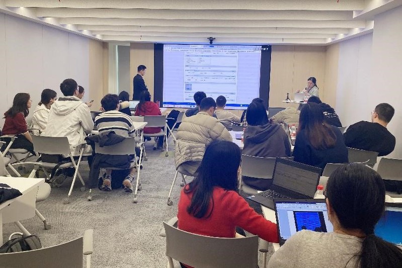 最后,会计学院师生参观申能集团数字商务实验室,观看了共享服务中心运用RPA(机器人与流程自动化)的实操演示视频,查看了各个信息端口之间的实时更新动态,观摩“申享通”财务、人力资源、商旅出行等共享平台办公动画。并在申能商服工作人员的指导和帮助下,分组进行案例实操,内容主要为利用申能集团的信息系统进行采购预付、一般报账、审批等实操模拟,体验某一个业务背景下的实务流程。