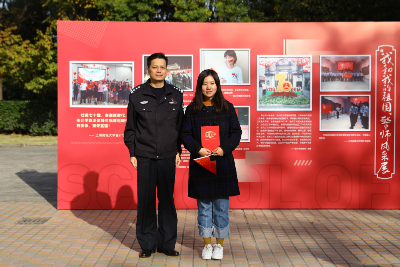 2019年11月19日下午,会计学院党委举行“不忘初心、牢记使命”主题教育活动暨“欢庆七十华诞,青春告白祖国”作品颁奖仪式。会计学院党建联建合作单位上海市杨浦区五角场街道派出所教导员童明,派出所团支部书记许捷,上海市社区十佳民警傅维勤,派出所民警林珊珊受邀出席。上海财经大学学生处老师丁晶,校团委老师梁毓琪,会计学院党委书记周国良,党委副书记黄莎,学生办公室主任赵果等出席。学院教师代表、辅导员代表、学生代表等50余名师生共同参加。